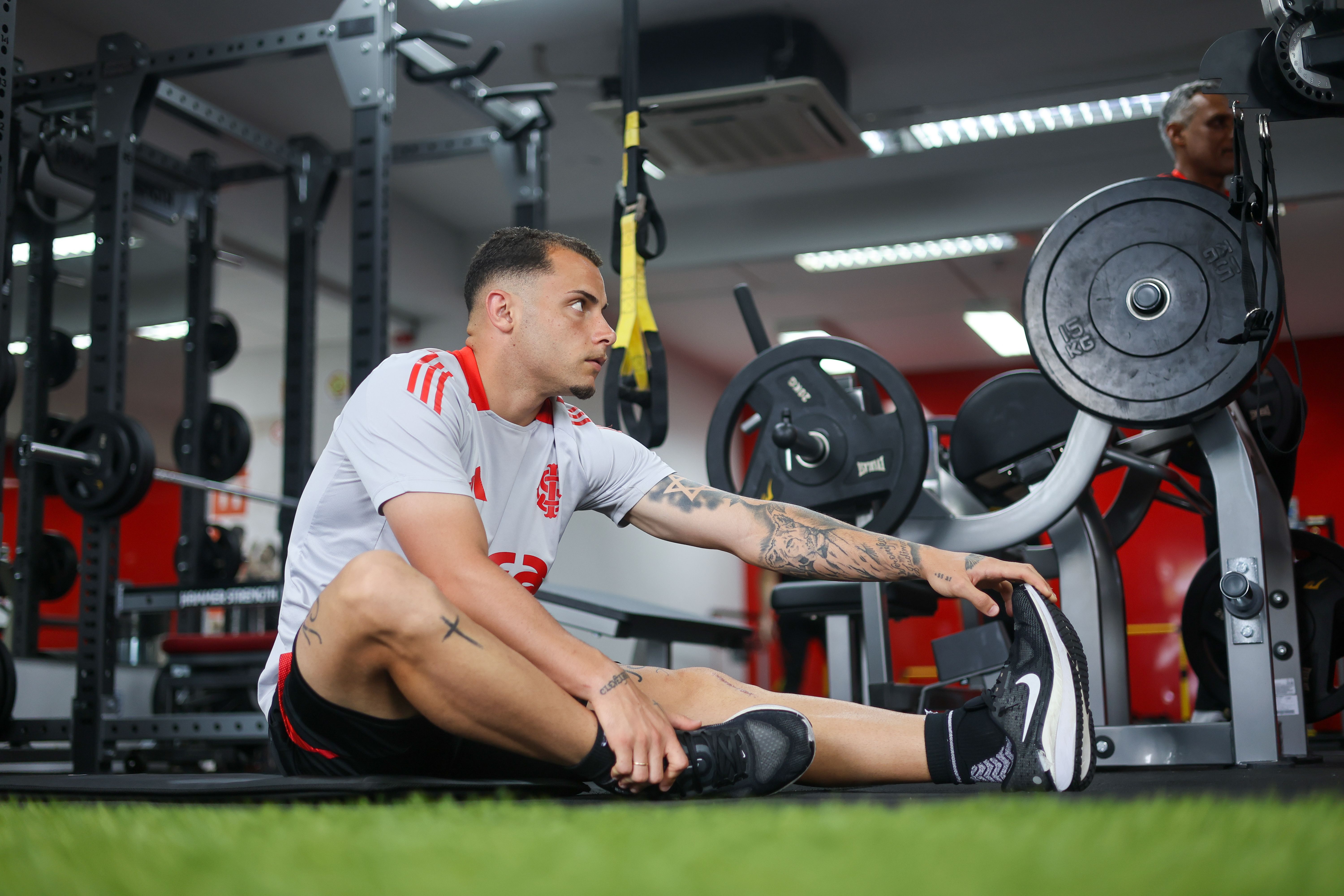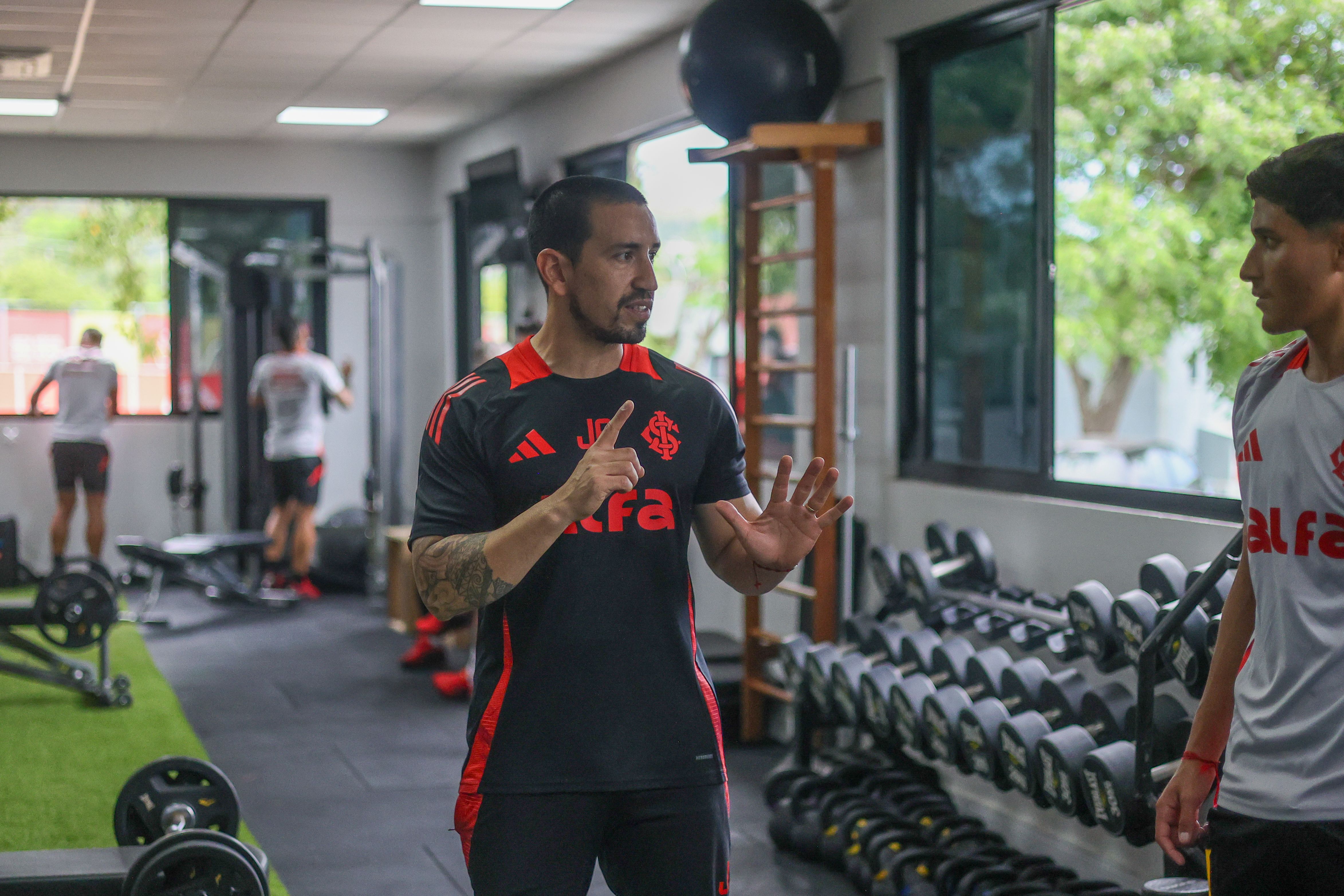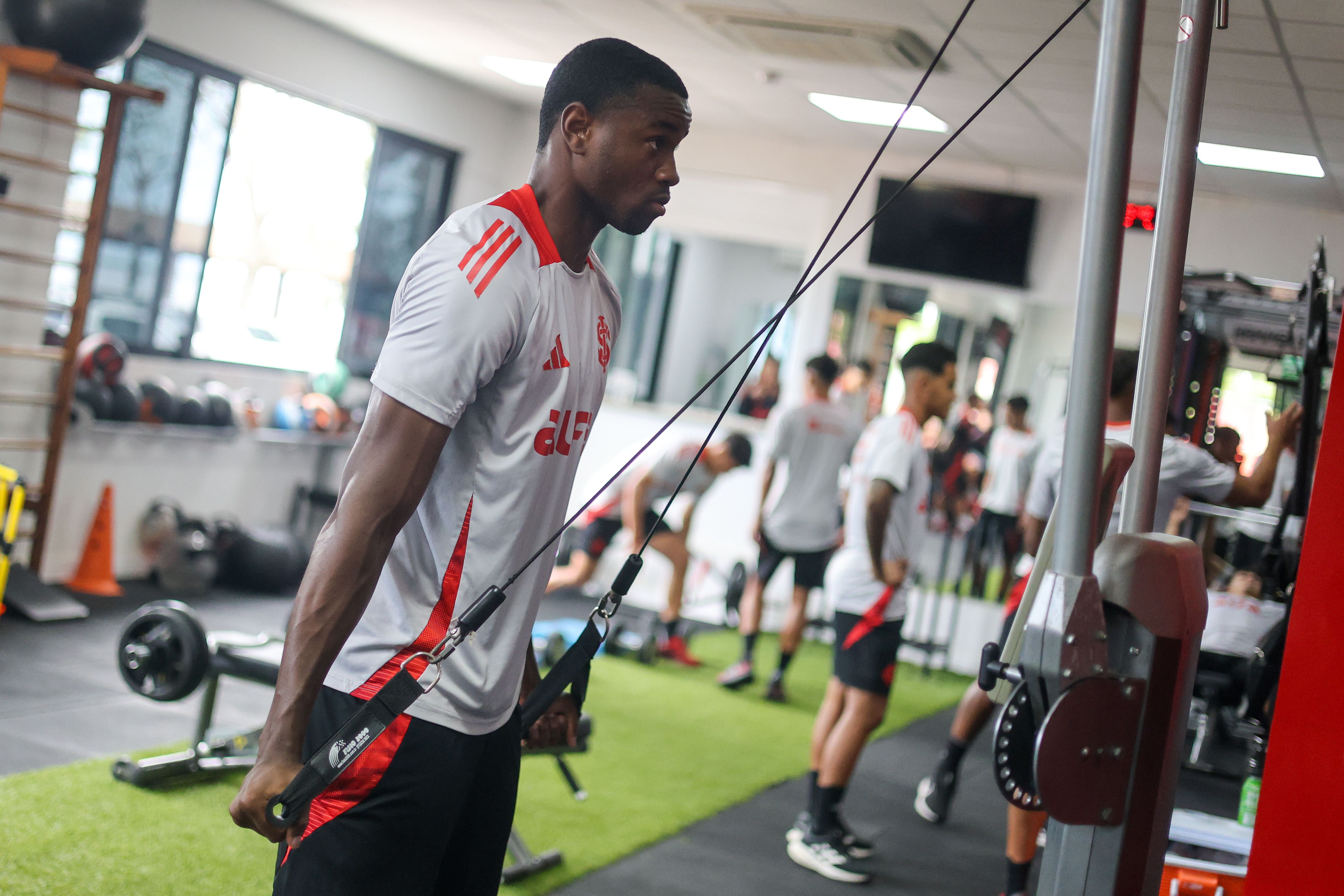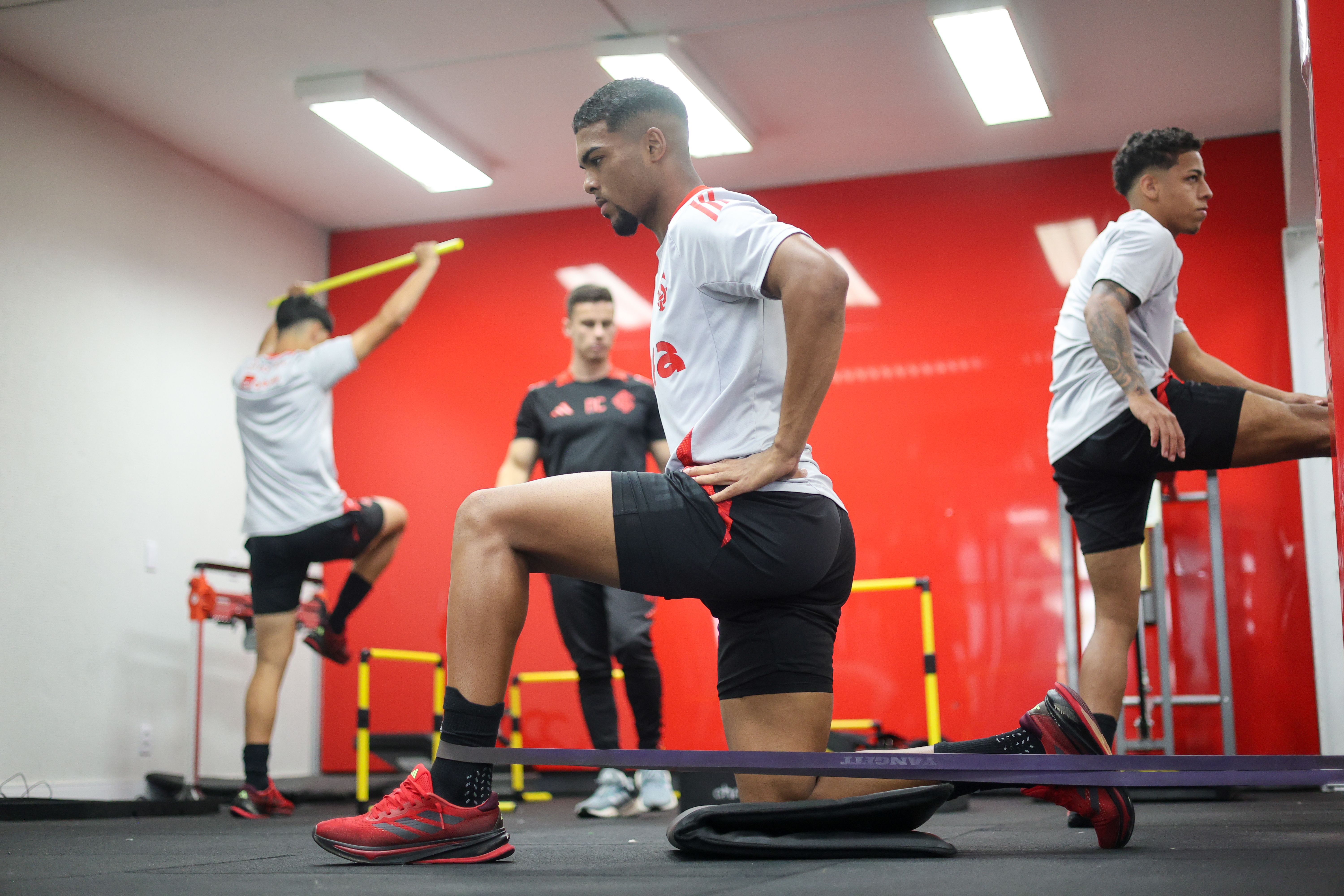 Na manhã deste domingo (12/10), os jogadores complementaram a semana com atividades físicas no CT Parque Gigante. Na academia, os atletas encararam um circuito com várias estações de exercícios.