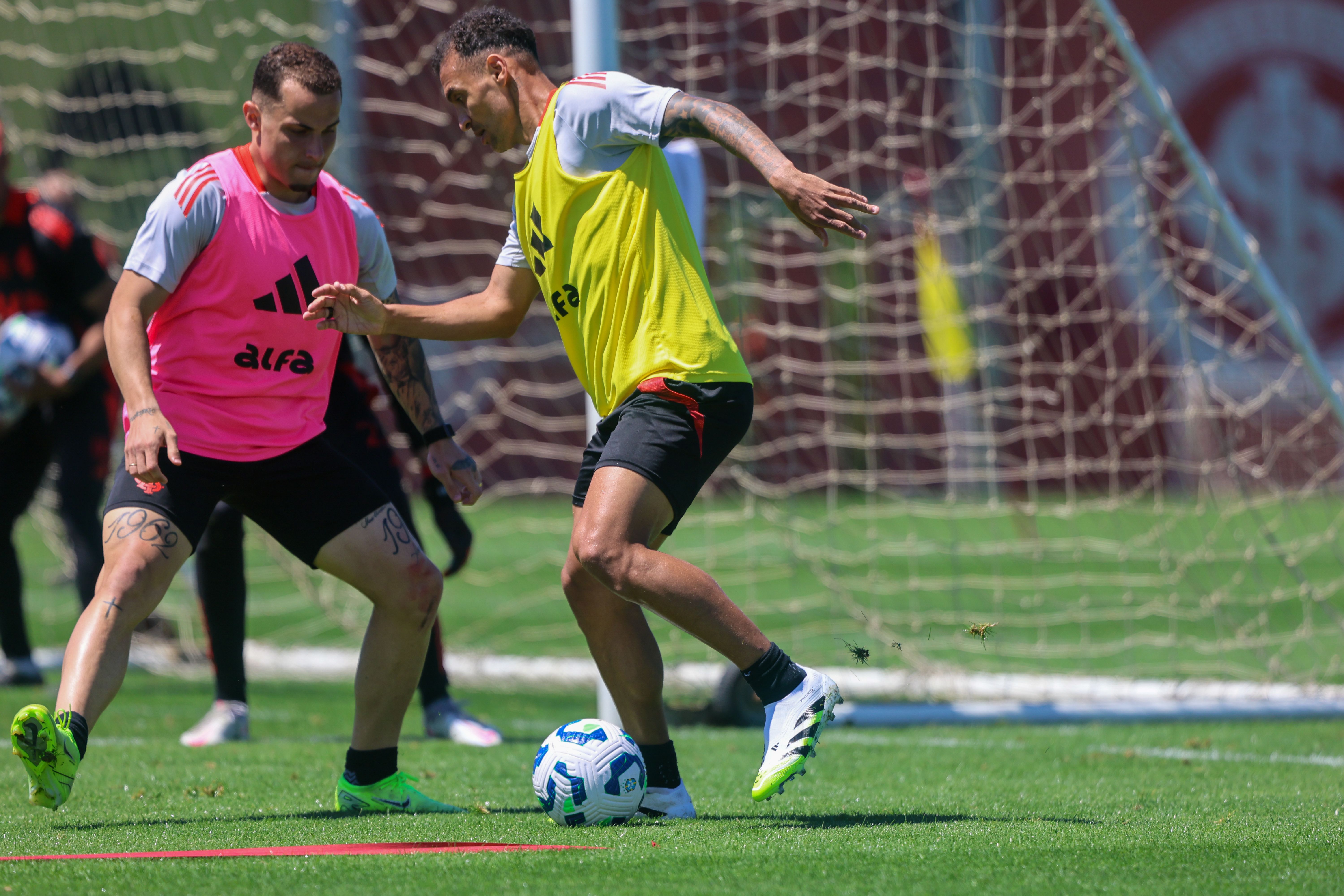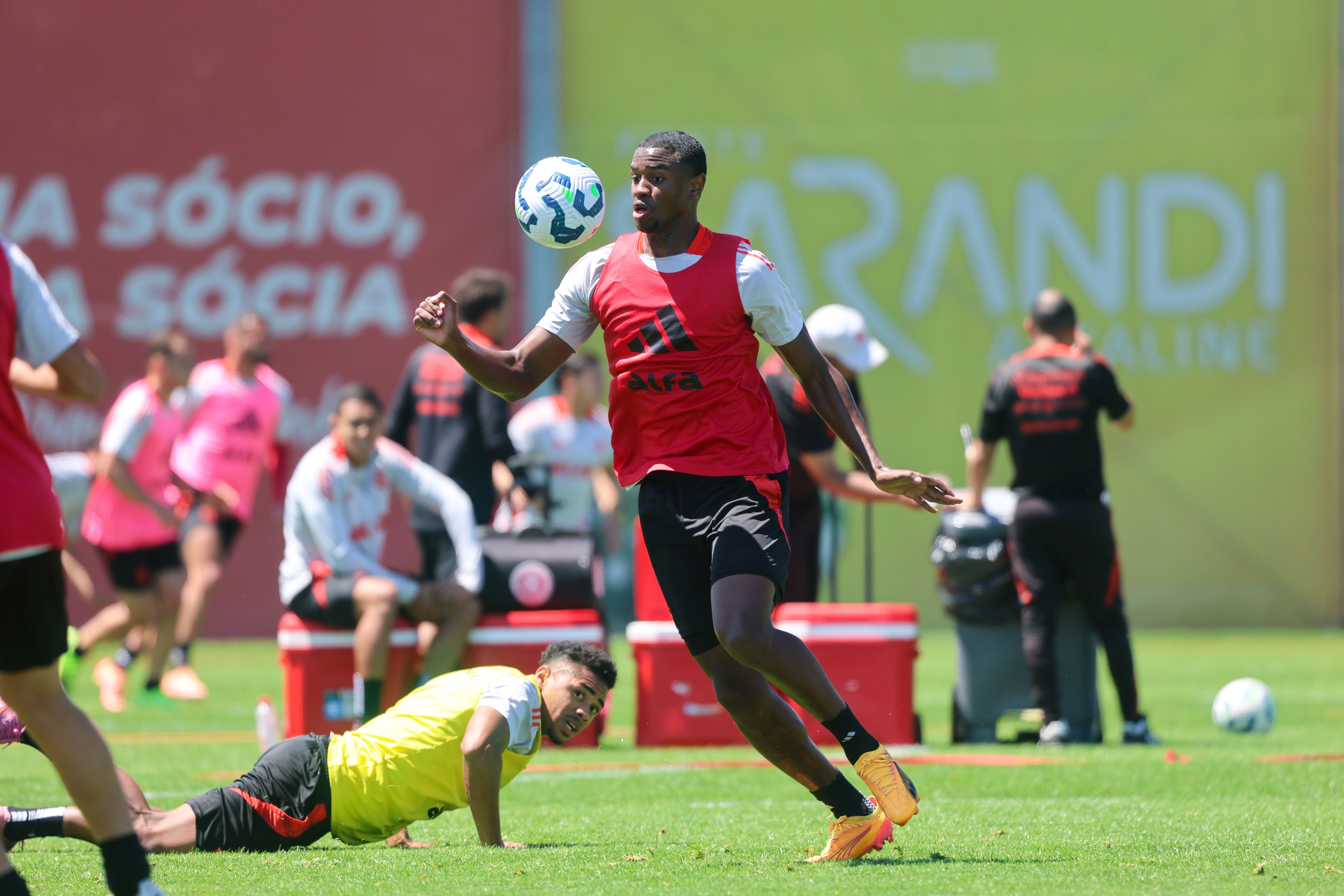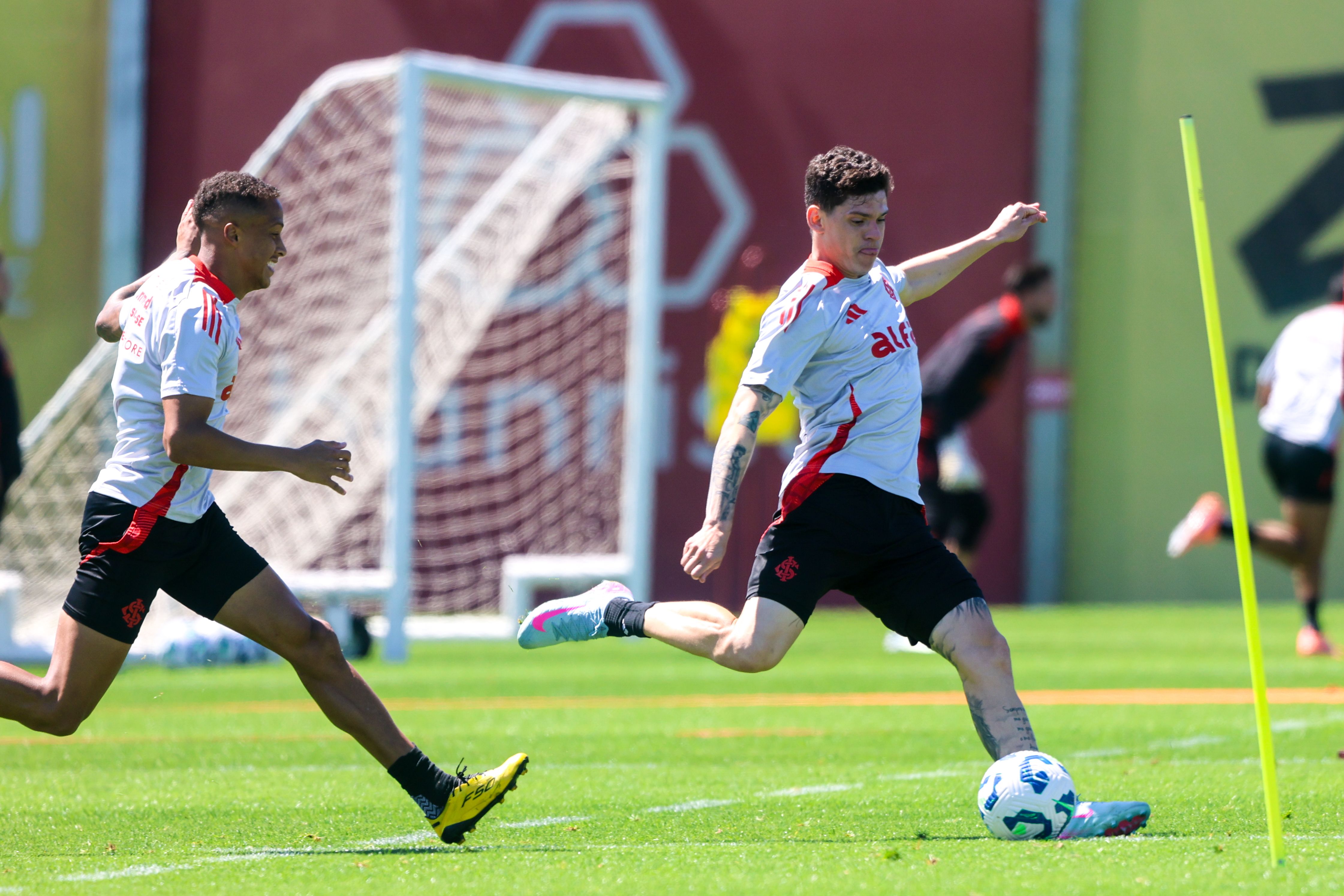 O treinamento desta quarta iniciou na academia com exercícios físicos de força. Depois, no gramado, os jogadores realizaram atividades técnicas de troca de passes, pressão no adversário e minijogos em campo reduzido, exigindo muita intensidade de cada atleta.